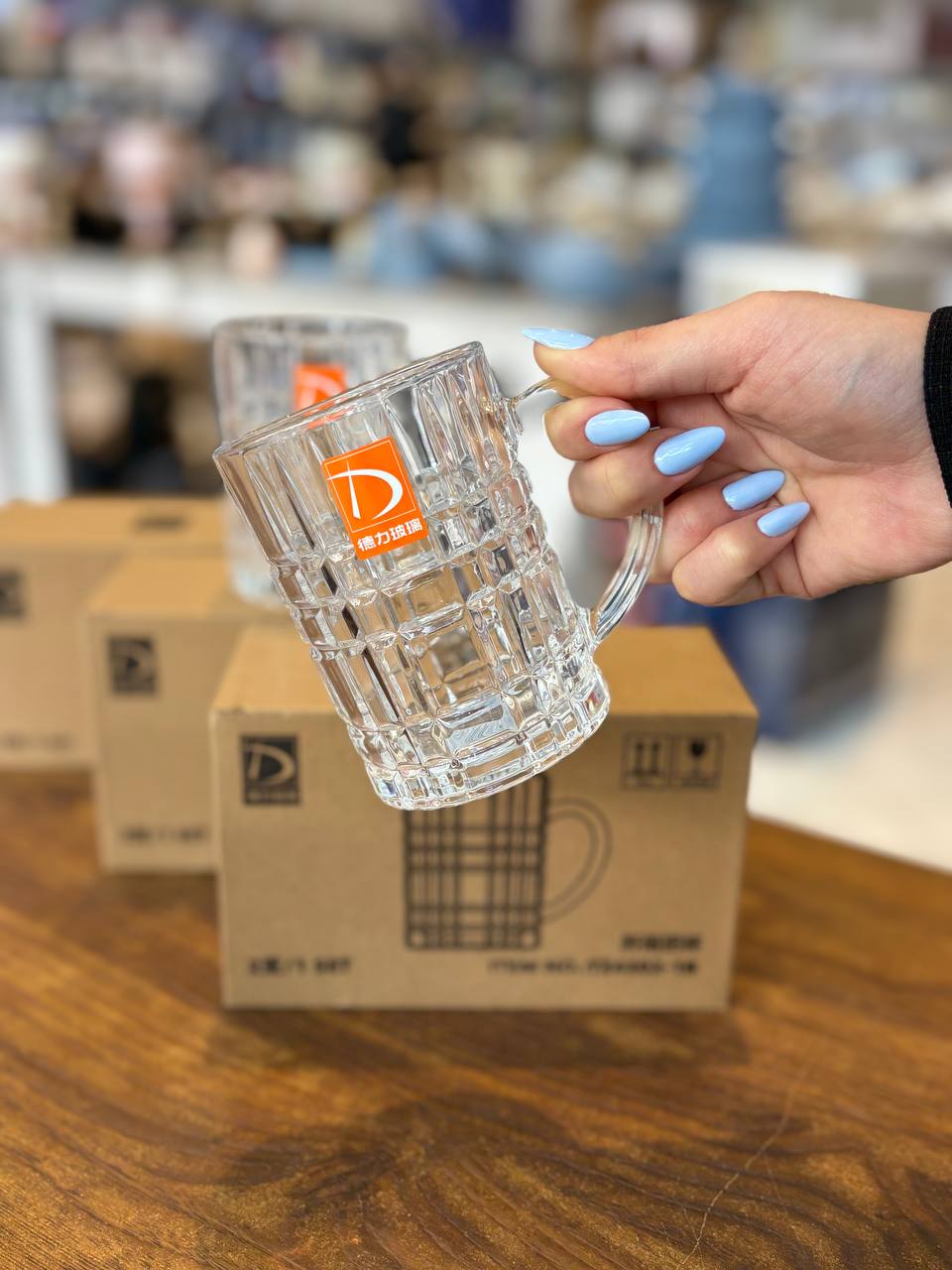 لیوان بلند مدل Blooming برند Deli Glass، شیاردار و دستهدار، بسته ۶ عددی – شفاف و درجه یک