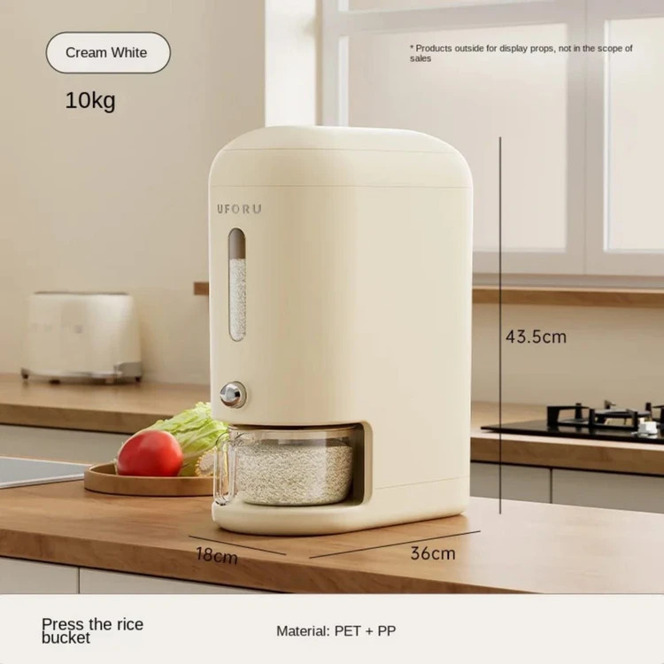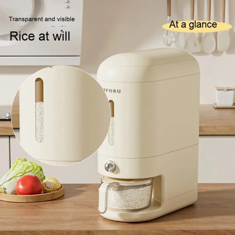 درب محصول از داخل مجهز به واشر سیلیکونی کاملاً آببندی شده است؛ این ویژگی باعث جلوگیری از عبور هوا، رطوبت و آلودگی شده و به تازه ماندن برنج کمک میکند. همراه این ظرف یک پیمانهی کاربردی نیز ارائه میشود که علاوه بر اندازهگیری، قابلیت استفاده بهعنوان آبکش برای شستوشوی برنج را هم دارد.