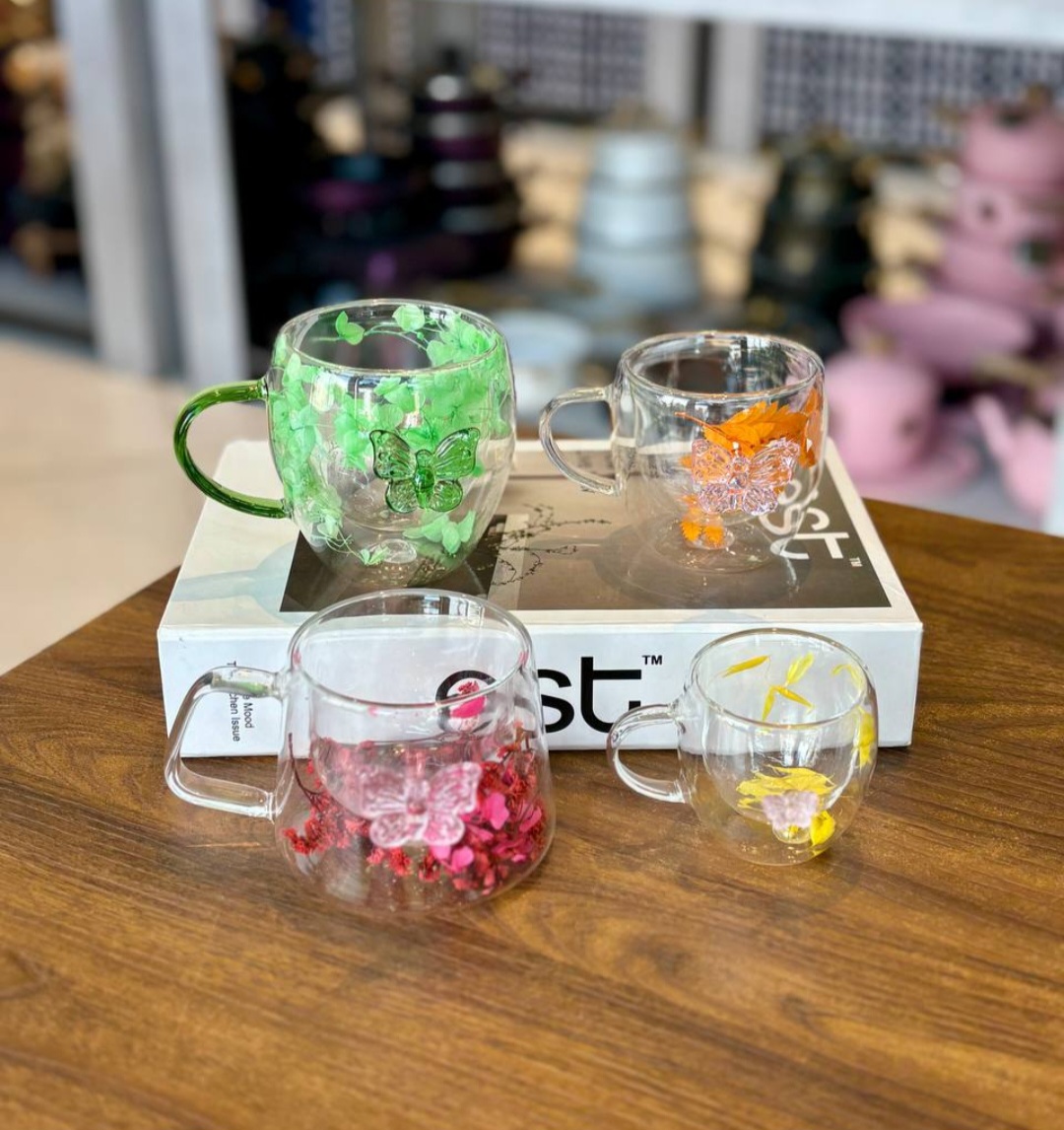 لیوان پیرکس دوجداره طرح پروانه، ترکیبی از طراحی فانتزی و عملکرد کاربردی است. استفاده از شیشه پیرکس مقاوم در کنار ساختار دوجداره، آن را به گزینهای مناسب برای نوشیدنیهای گرم مانند قهوه، چای و دمنوش تبدیل کرده است.