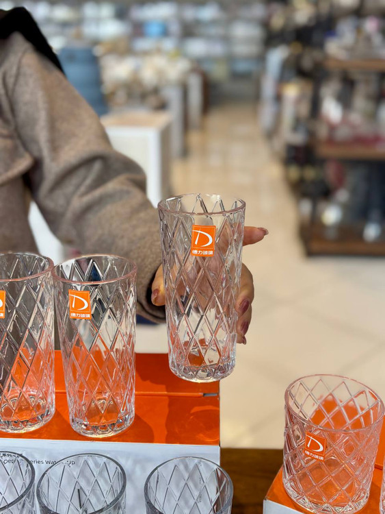 طرح لوزی برجسته یکی از محبوبترین الگوهای طراحی در ظروف شیشهای است. این طراحی علاوه بر زیبایی بصری، باعث میشود لیوان در دست لیز نخورد و حس بهتری هنگام استفاده ایجاد کند.
